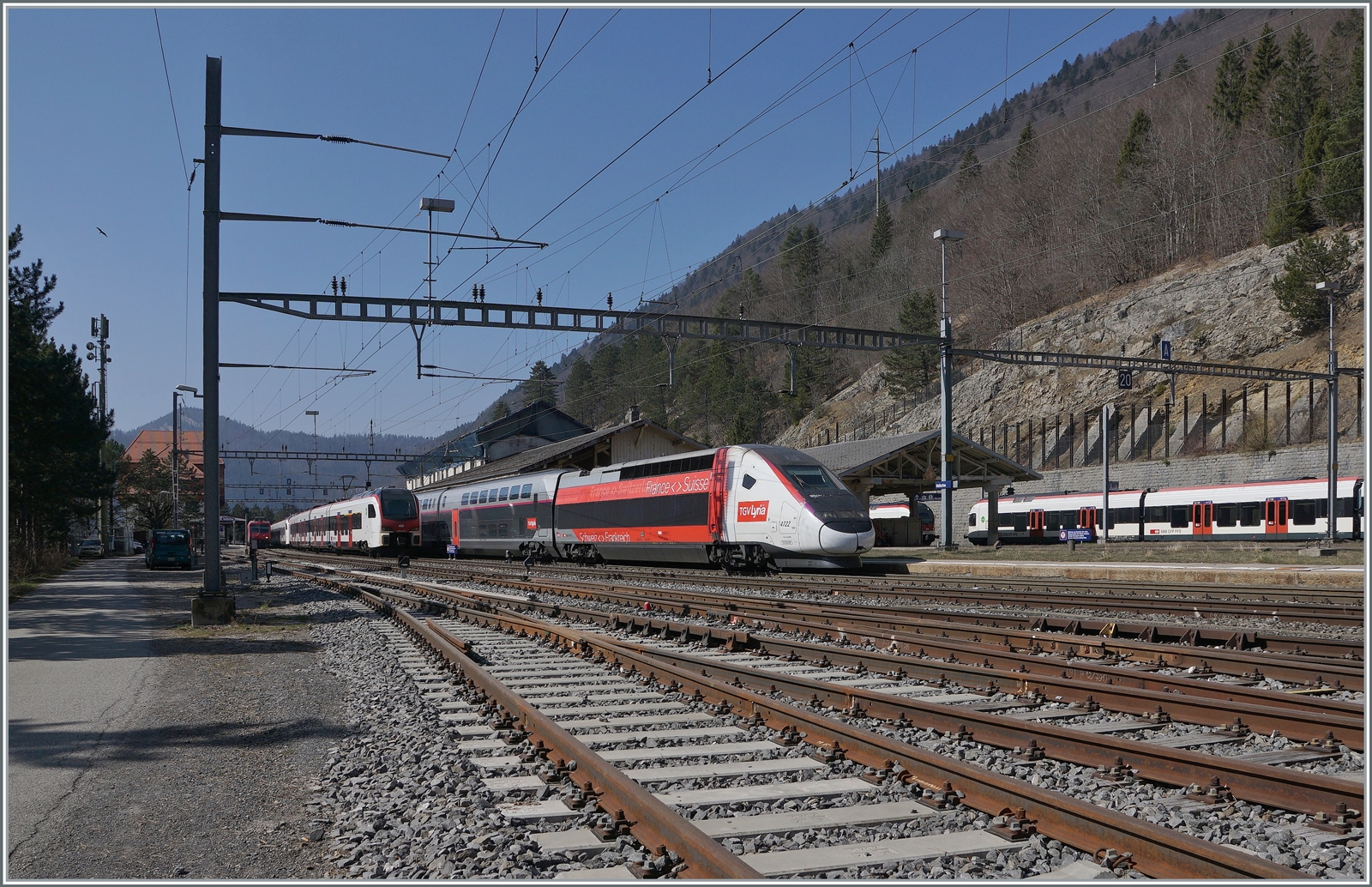 Der TGV Lyria 4411 wartet am 24. April 2019 auf die Fahrt nach Bern.