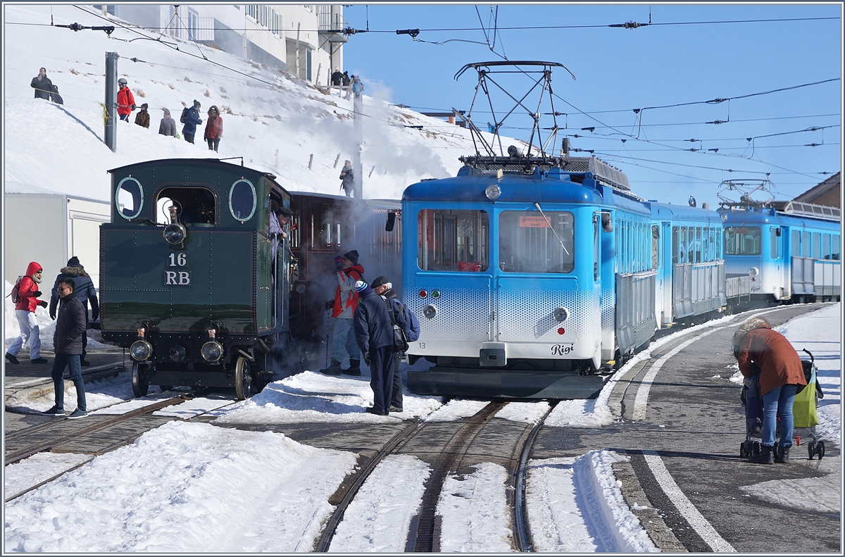 Noch einmal der RB BDeh 2/4 von 1949, diesemal in arth Goldau, unter der dicken Nebeldecke.