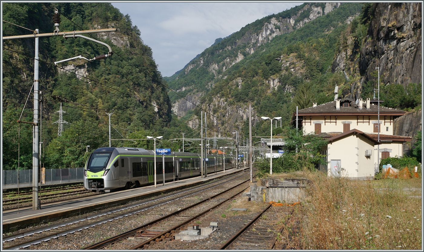 Während der ICE seine Warteposition auf dem Lorrainviadukt erreicht hat, fährt einer langer RE-Zug der BLs gebildet aus Flirt 4-Triebzüge der Baureihe RABe 528.1 auf Gleis 9 ein.