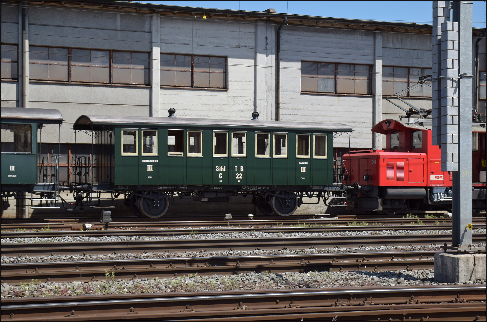 "Le Chablais en fête" bei der Blonay Chamby Bahn. Die Eröffnung des ersten Teilstückes der Bex - Villars vor 125 Jahren, sowie die vor 80 Jahren erfolgte Fusion einiger Strecken im Chablais war der Anlass zum diesjährigen Herbstfestivals "Le Chablais en fête. Als besondere Attraktion zeigt sich der ASD BCFe 4/4 N° 1 "TransOrmonan" der TPC mit seinem B 35 als Gastfahrzeug. Das Bild zeigt den 1913 gebauten und 1940 umgebauten BCFe 4/4 N° 1 beim Rangieren in Blonay.