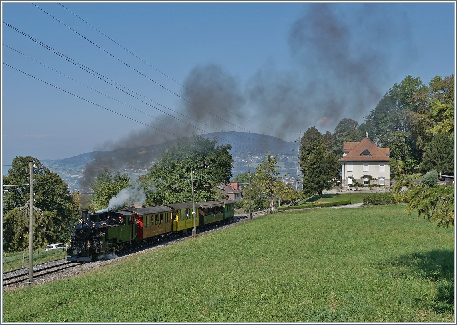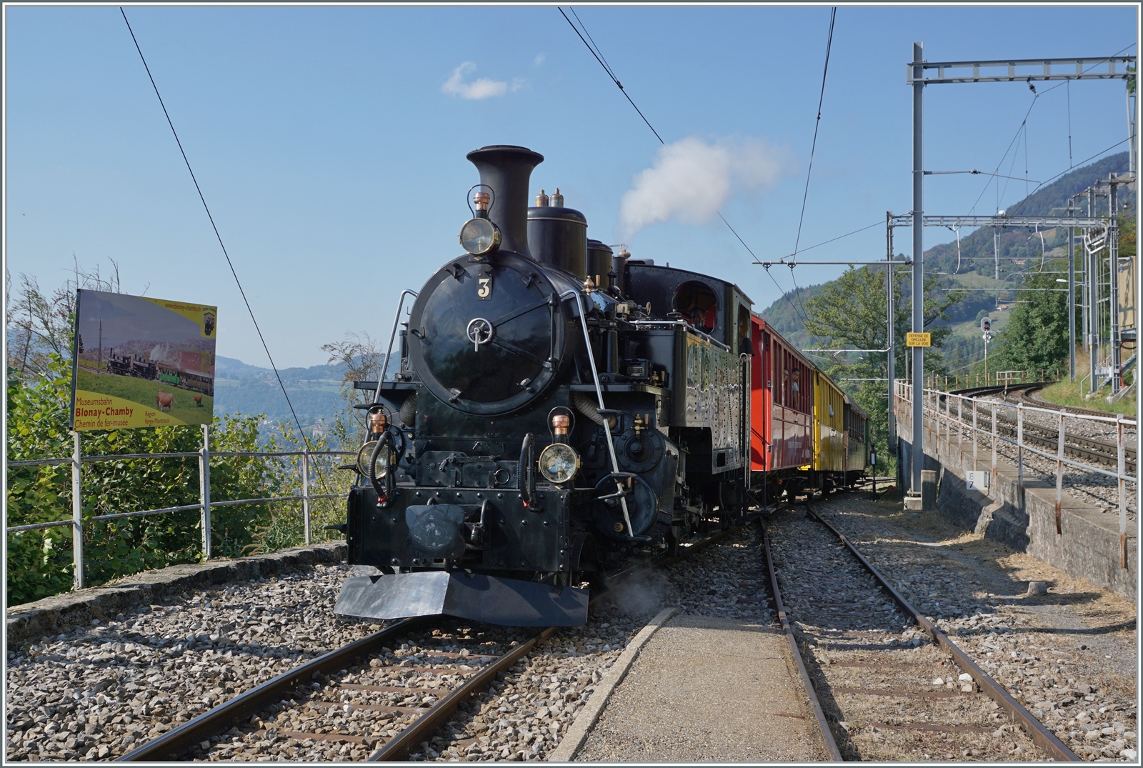 "Le Chablais en fête" bei der Blonay Chamby Bahn. Die Eröffnung des ersten Teilstückes der Bex - Villars Bahn vor 125 Jahren, sowie die vor 80 Jahren erfolgte Fusion einiger Strecken im Chablais waren der Anlass zum diesjährigen Herbstfestivals "Le Chablais en fête. Nachdem Genuss der überraschenden Fahrzeugparade (siehe ID 824032) verlässt der ASD ABDe 4/4 N° 1 den Bahnhof von Chamby in Richtung Chaulin.