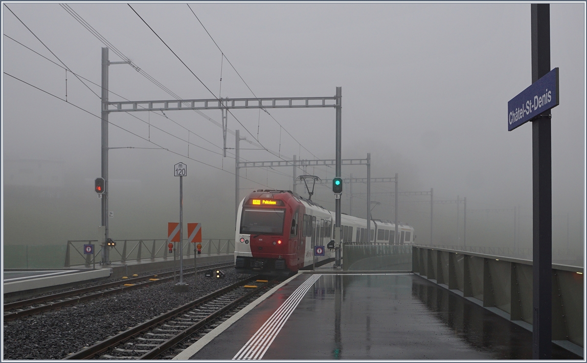Ein TPF SURF ABe 2/4 - B - Be 2/4 wartet in Châtel St Denis auf die Abfahrt nach Montbovon. Im Hintergrund wartet ein weiterer Ein TPF SURF ABe 2/4 - B - Be 2/4 aus seinen Einsatz. Die Tage des Bahnhofs sind gezählt der "neue" bereits im Bau.