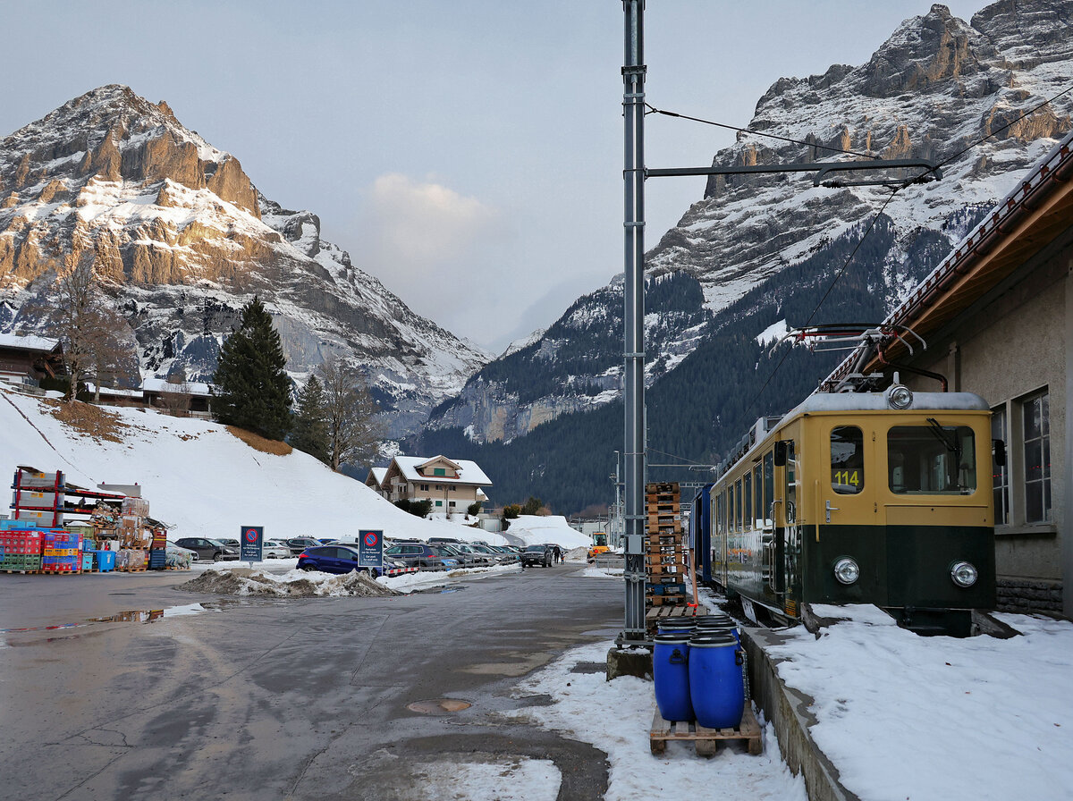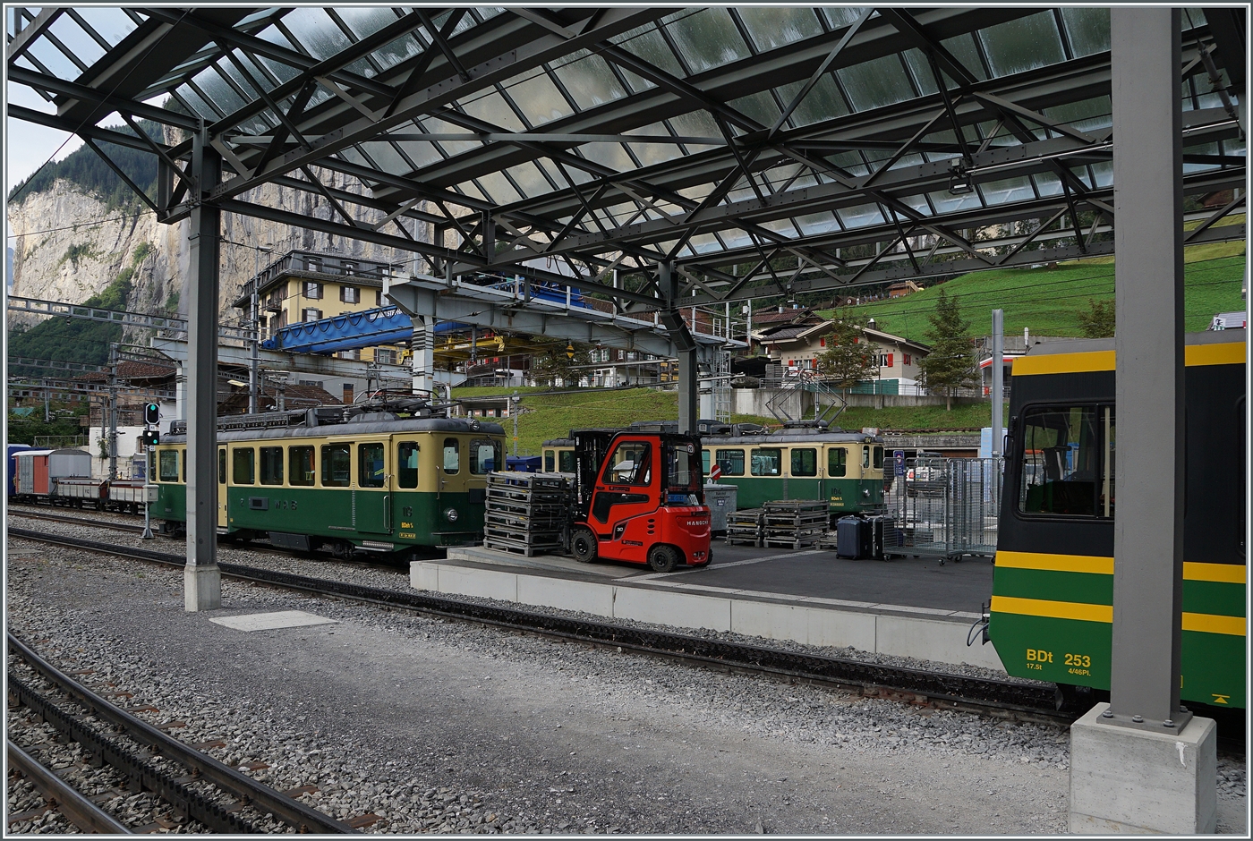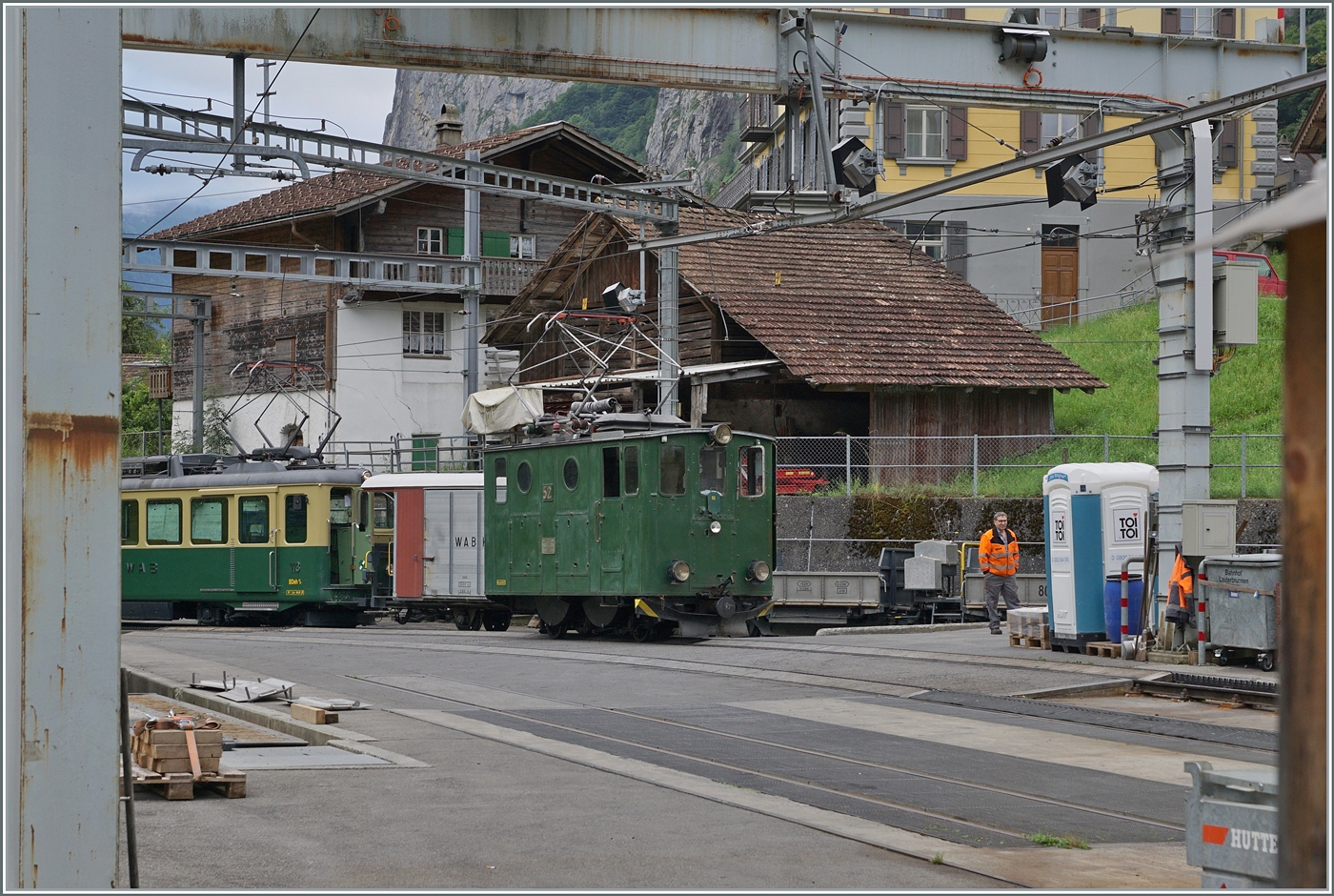 A Wengeralpbahn train taking on passengers at Lauterbrunnen prior to departure for Kleine Scheidegg. Most likely taken on 3rd September 1962.