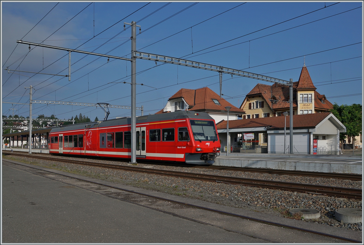 Der Gepäcktriebwagen De 4/4 II 411 aus dem Jahr 1953 wurde 1986 einer umfassenden Modernisierung unterzogen. Deswegen darf der antik anmutende Triebwagen auch heute noch Leistungen für die CJ erbringen. Hier in Le Noirmont mit einem Müllzug für den Einsatz am nächtsen Werktag vorgbereitet. August 2024.