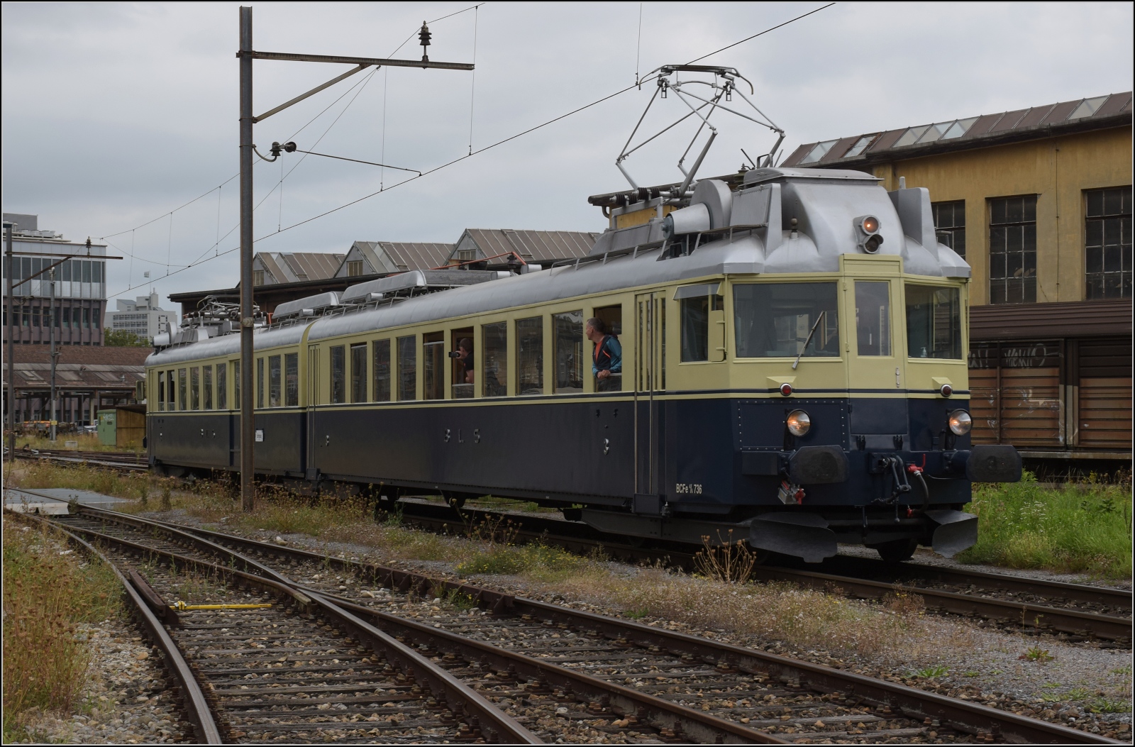 Depotfest Olten 2023. Der BCFZe 4/6 der BLS im funktionellen Design ist einer der Stars der Ausstellung. Er wurde im Jahr 1938 noch vor der Fusion an die Bern-Neuenburg-Bahn geliefert. August 2023.