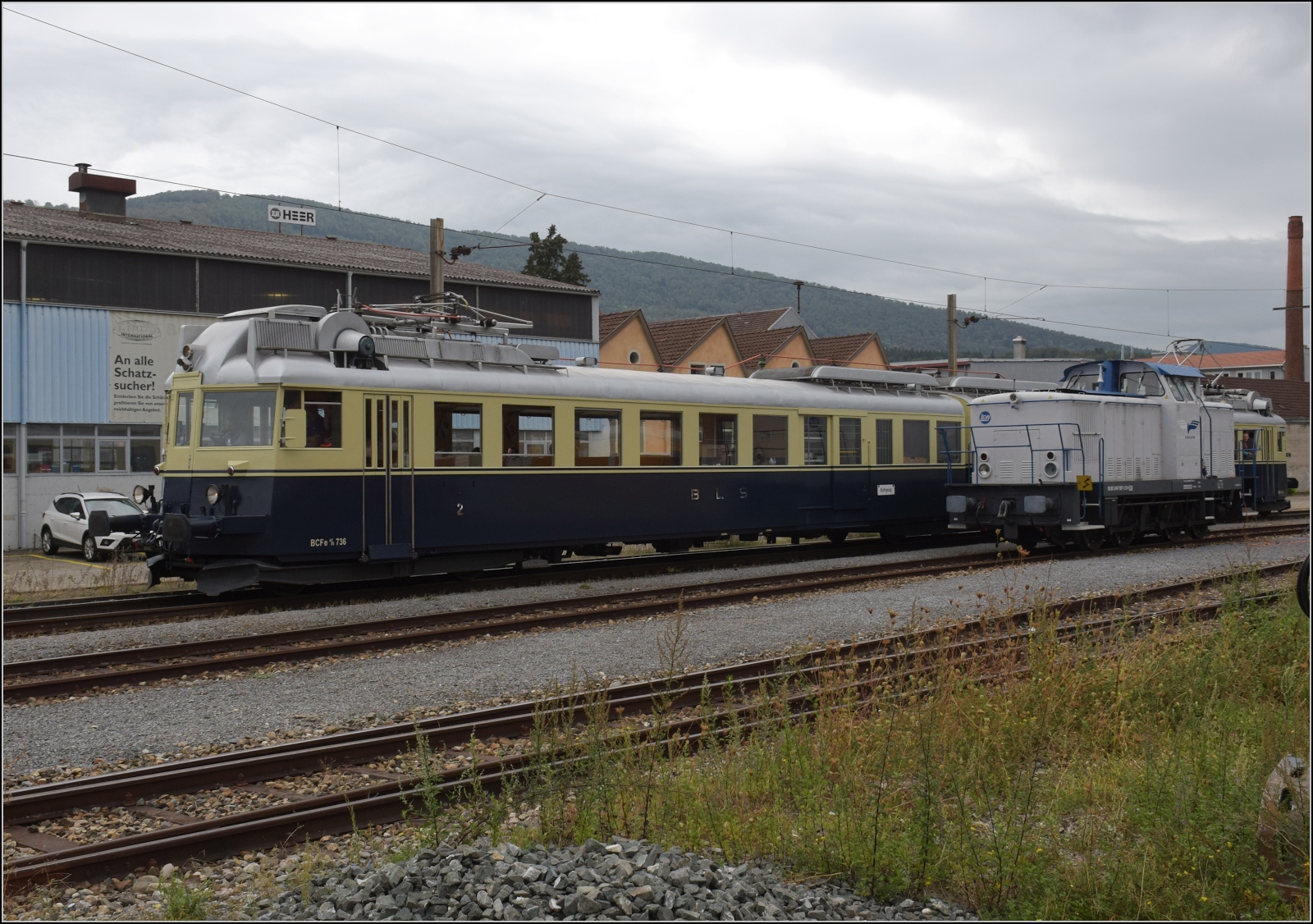 Der BCFZe 4/6 der BLS im funktionellen Design ist einer der Stars der Ausstellung, er fällt auch von weitem auf. August 2023.