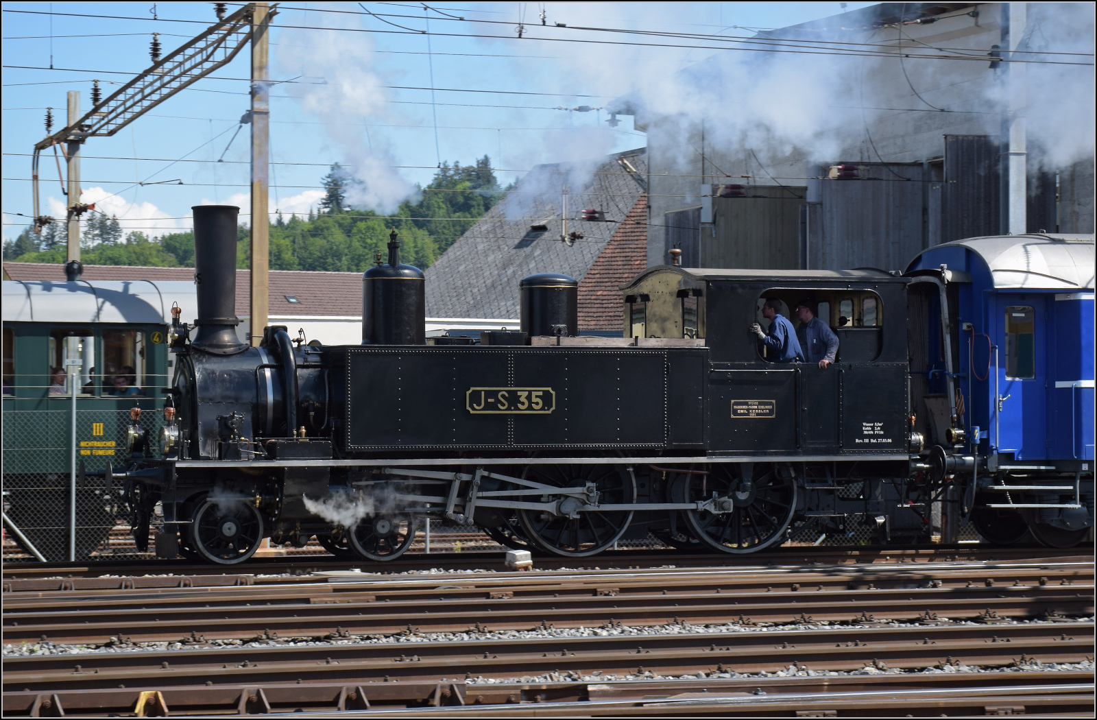 J-S 35 verlasst mit eine der manche Extrazüge am 17 Mai 2025 Burgdorf -und der Fotograf wird selbst erwischt von einige Reisenden...