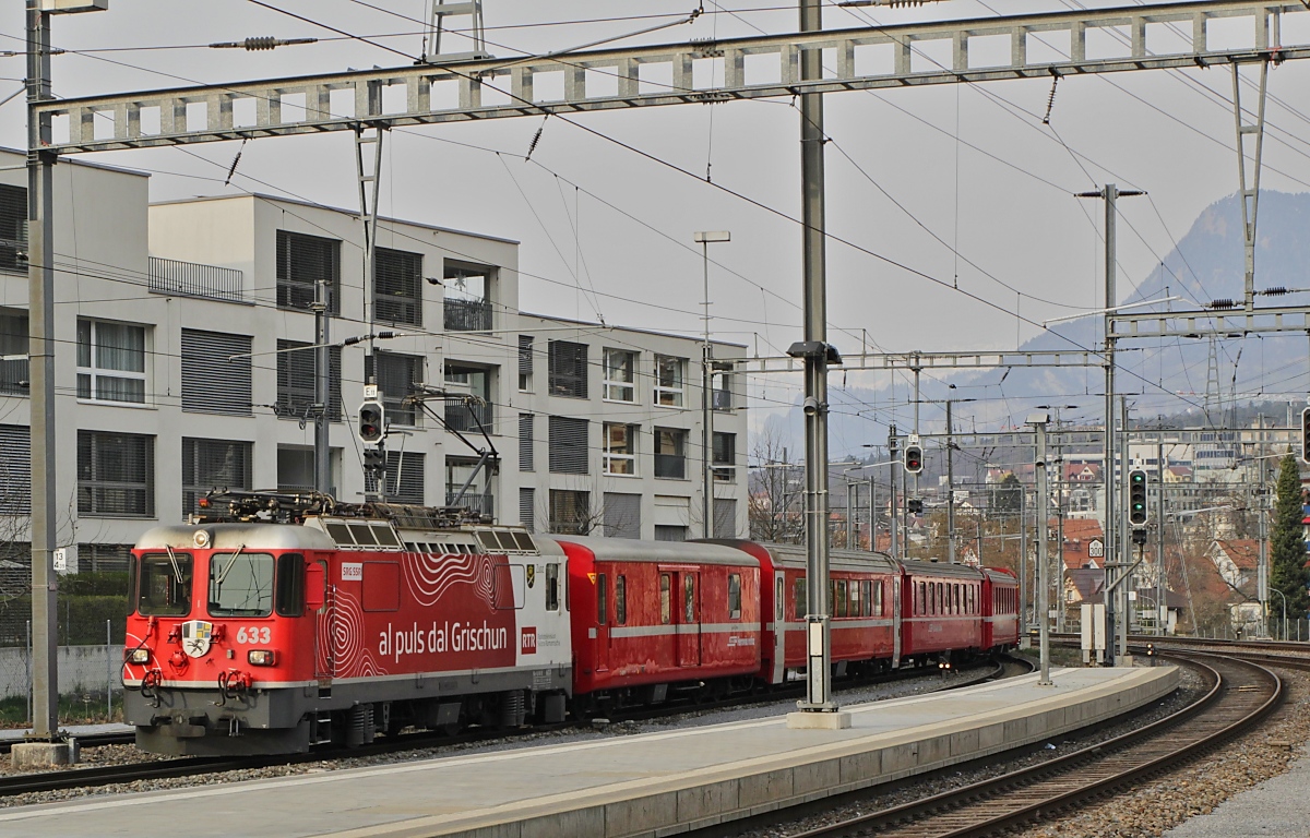 Die SBB Cargo Am 843 062-1 eine MaK 1700 BB fährt am 01.11.2019 mit einem Güterzug durch den Bahnhof Chur Richtung Landquart.