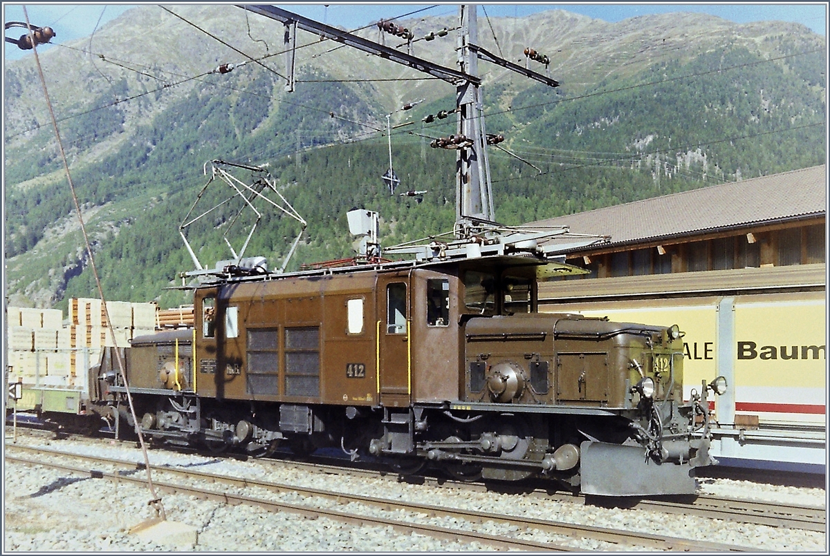 Ge 6/6 I 415 rangiert im Februar 1981 im Bahnhof Landquart