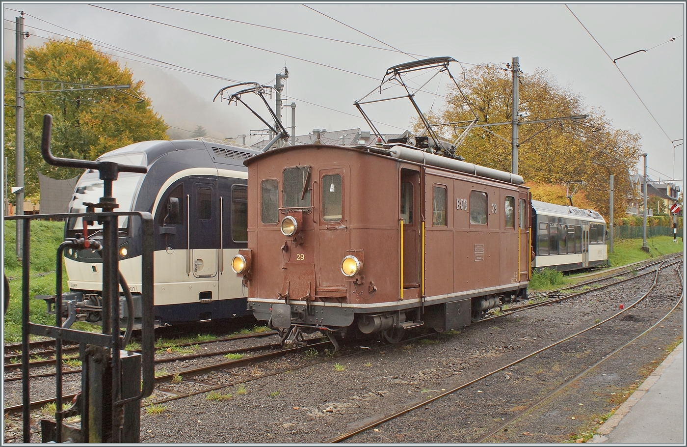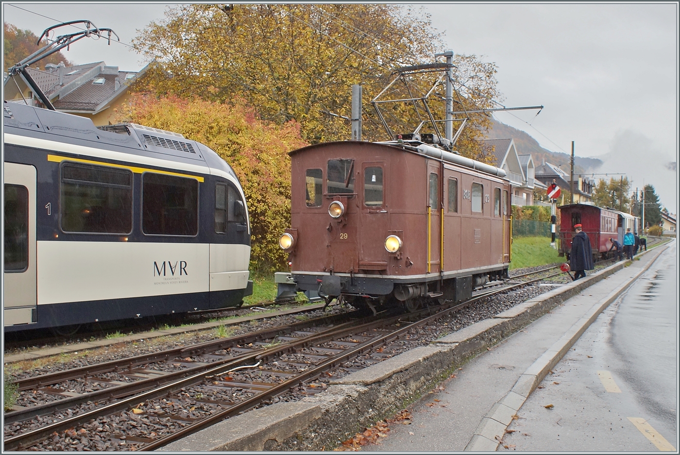 La DER de la Saison! (Saisonabschlussfeier der Blonay-Chamby Bahn 2022) Die BOB HGe 3/3 29 der Blonay-Chamby Bahn wartet in Blonay auf die Zustimmung zur Fortsetzung ihrer Rangierfahrt.