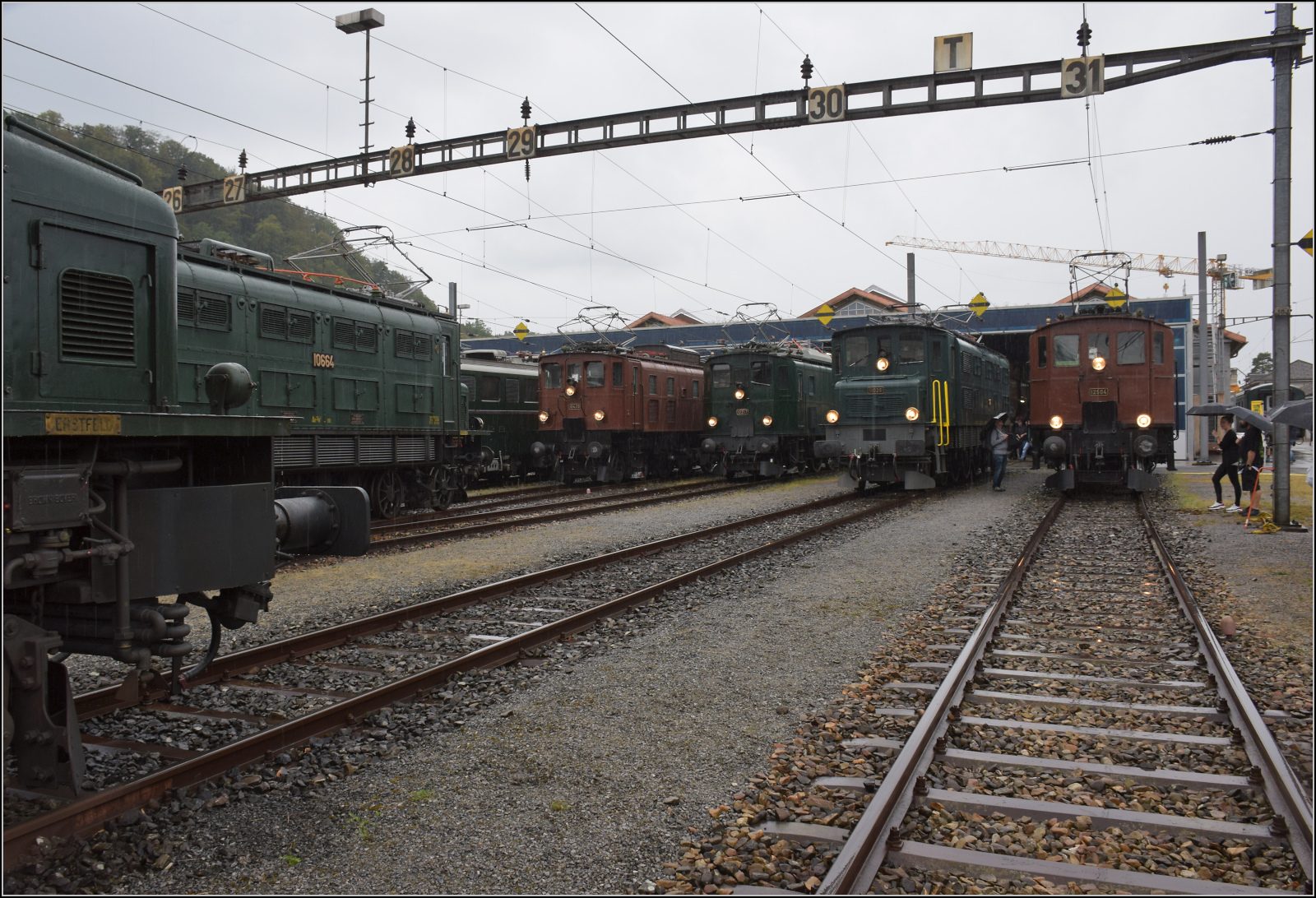 Die SBB Ae 3/6 I 10596 mit einem Postzug in Aarau.
