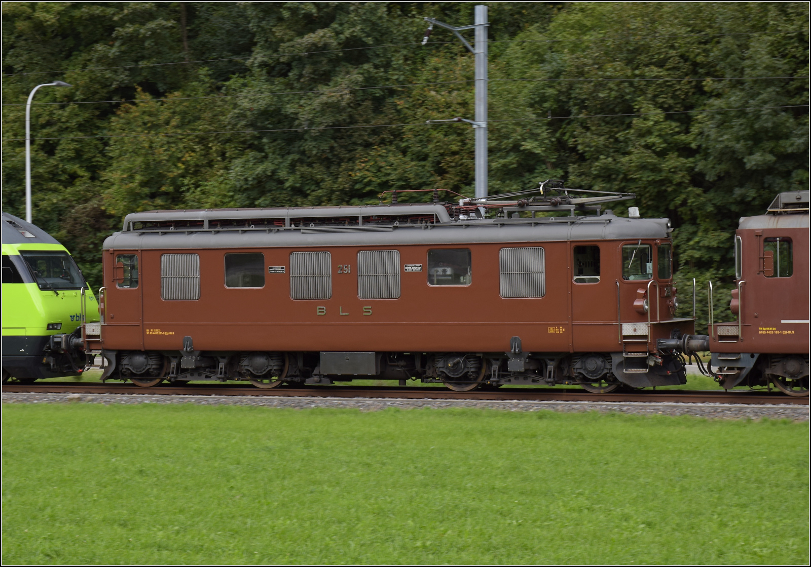 Einmal mehr bot das "Gleis 2" in Lausanne eine freudige Überraschung, wenn auch kaum Zeit bleib, diese fotografisch gebührend festzuhalten: die BLS Ae 4/4 251 mit eine SBB WR und einem BLS EW I fährt nach einem kurzen Halt auf die Abstellgleise im westlichen Bahnhofsvorfeld. 26. August 2017