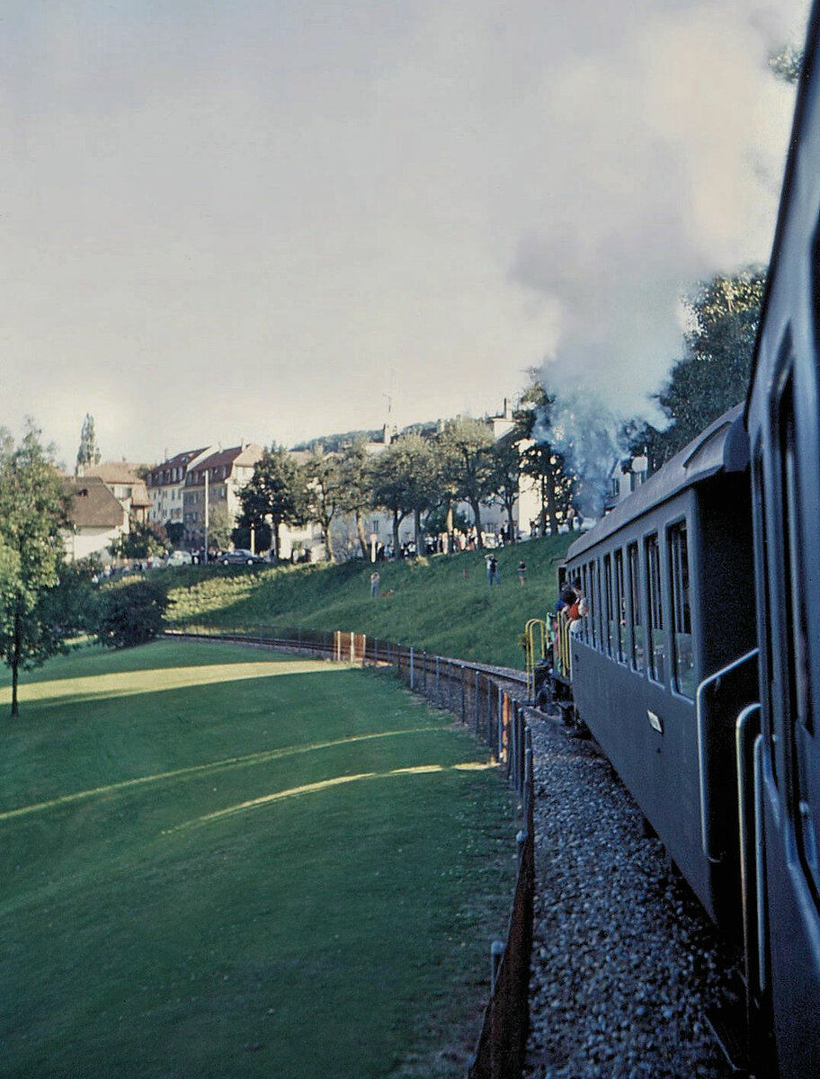 Am 8.März 1967 herrscht in Wabern ein erstaunlicher Güterverkehr. Vorne steht Ce 4/4 311 mit einem Güterzug der Gürbetallinie; der erste Wagen ist ein uralter BLS Drehgestellwagen (B 855?). Links daneben steht der Em 2/2 "Mutz" der Gaswerkbahn Bern, im Schlepp Kesselwagen für die damaligen Bitumen (und Erdöl?)-Verarbeitungsindustrien entlang der Bahnstrecke, bevor diese dann in die steile Steigung hinunter zum Gaswerk einbiegt.