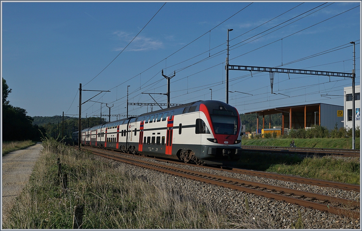 Die SBB Re 430 358-2 bei Vufflens la Ville, Abzweigung zum Industrieangschluss.