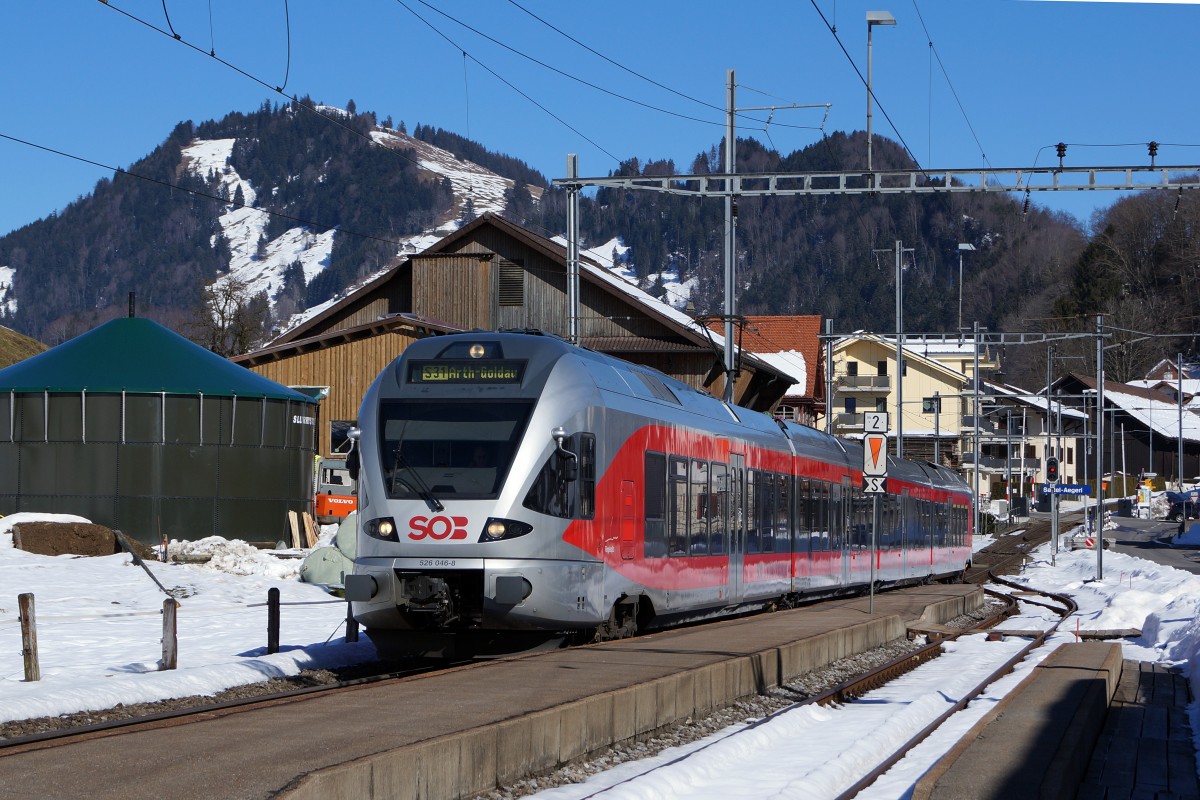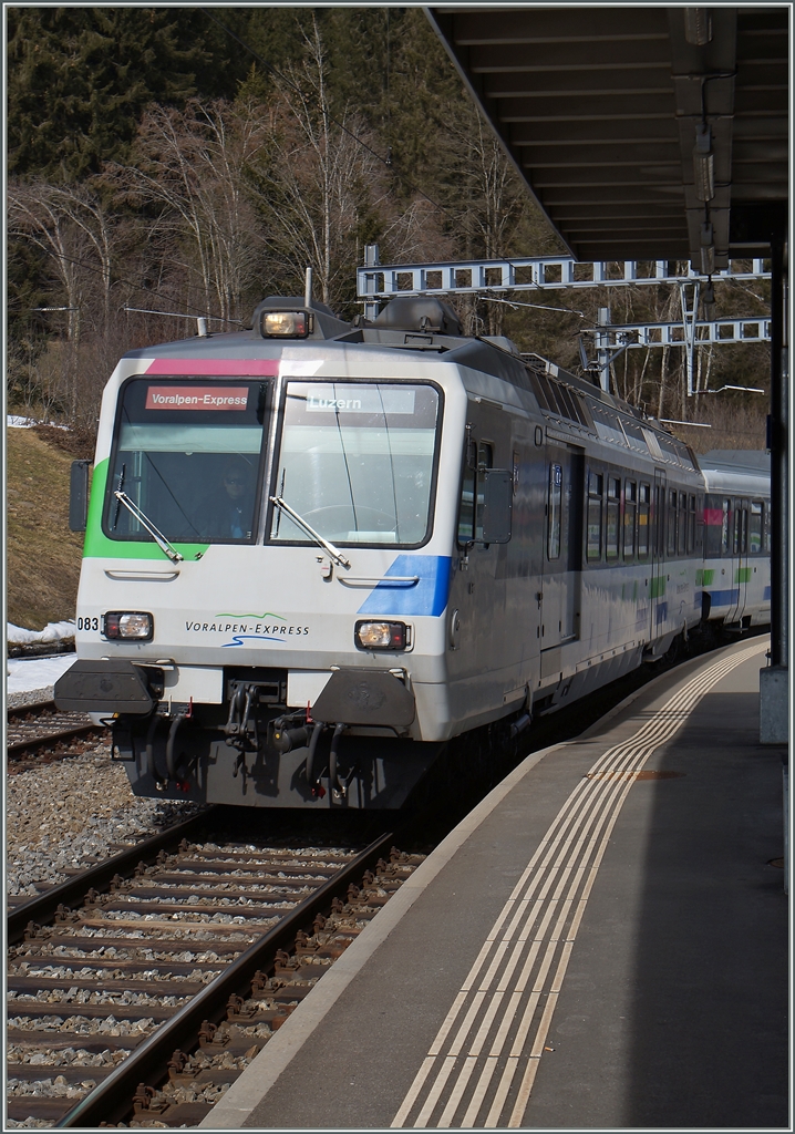 Die BT (Bodensee Toggenburg Bahn) Re 4/4 N° 96 (Re 456 096) ist mit einen Voralpenexpress (VAE) von Romanshorn nach Luzern unterwegs und konnte beim Halt in Pfäffikon SZ fotografiert werden.