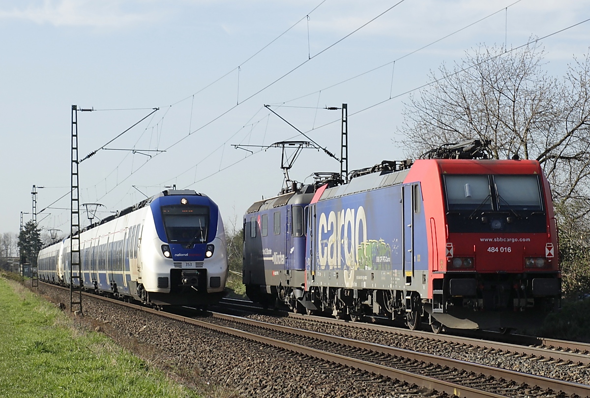 Eine SBB Cargo Re 484 wie die 016-1 kann man eigentlich Deutschland nur mit viel Glück sehen, denn sie haben nur die Zulassungen für die Schweiz und Italien. Sie haben keinen Stromabnehmer mit breiterer Wippe gemäß deutscher Vorschrift, auch die die deutsche Zugsicherung Indusi fehlt ihnen. Der Lz war auf dem Weg nach Krefeld.