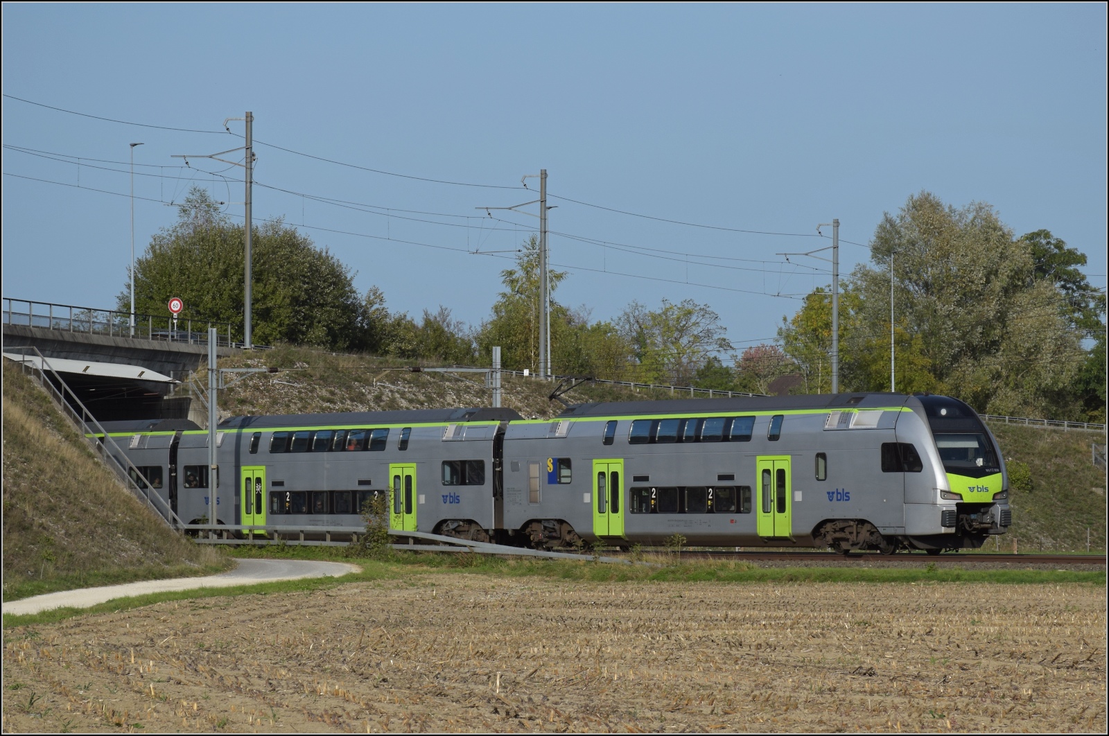 Mutz RABe 515 039 an gleicher Stelle bei Langenthal auf der unteren Strecke. Oktober 2023.