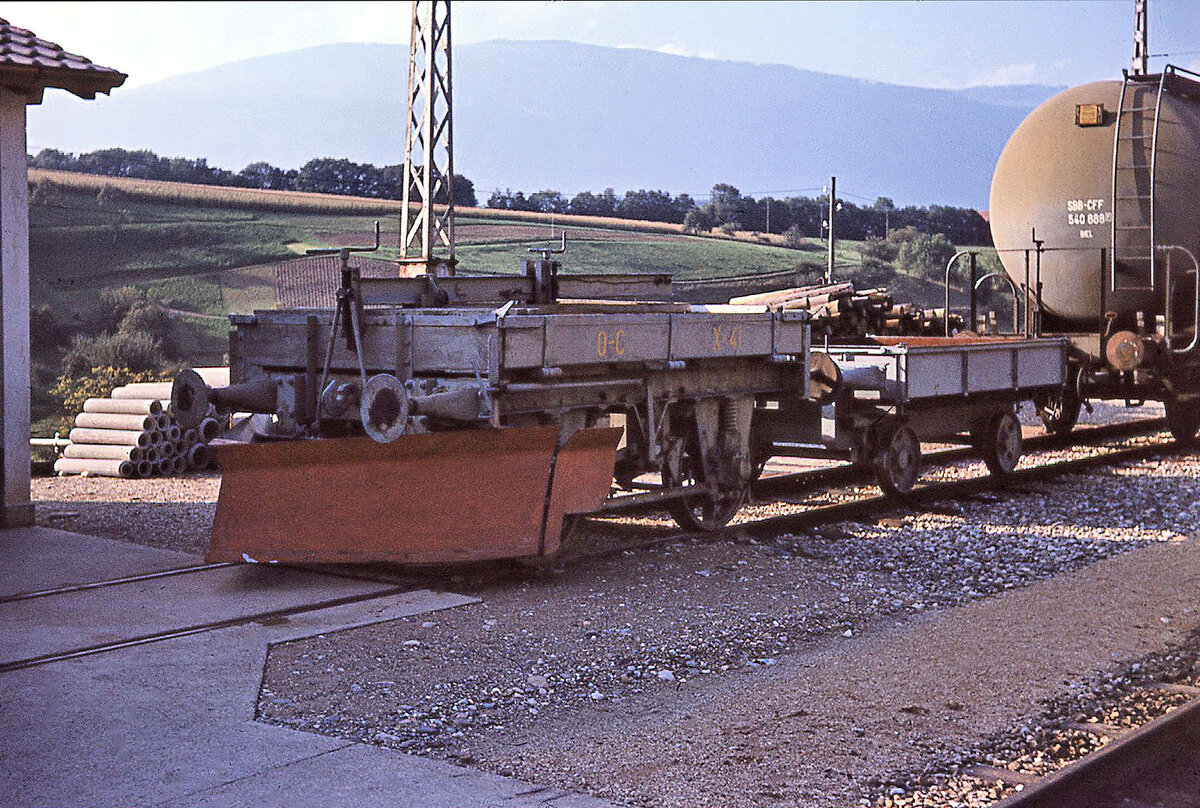 Alte Fahrzeuge auf der Orbe - Chavornay - Bahn: Schneepflug X 41, Orbe, 17.Sep.1967