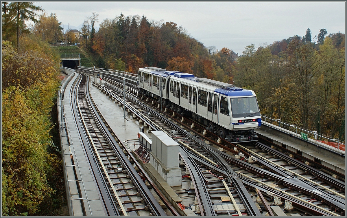 Der TL Be 4/6 218 (Be 558 218-1) und der Bem 4/6 207 (Bem 558 207-7) erreichen als M1 ihr Ziel Renens VD. Beim führenden Be 4/6 218 handelt es sich um einen Nachbau bei welche auf den thermischen Antrieb verzichtet werden konnte. Das Bild entstand vom Bahnsteig aus.
