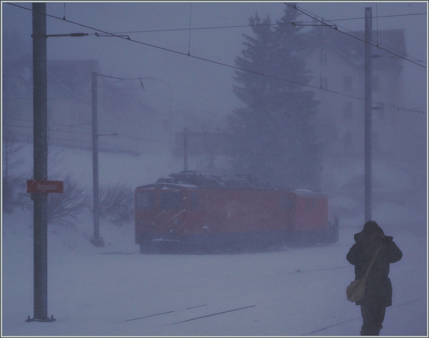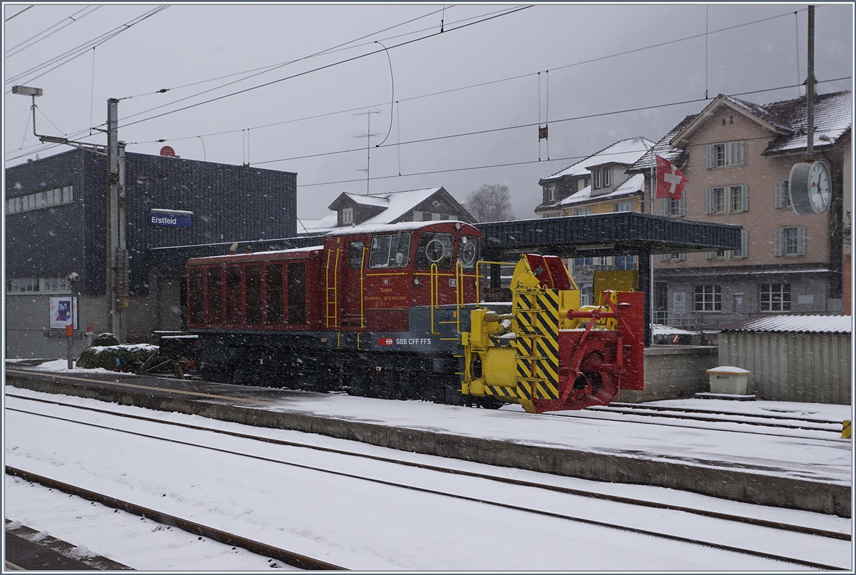 Der Schneepflug wurde 1964 in den Werkstätten der MOB auf ein altes SWS Drehgestell (vom B4 48) aufgebaut.