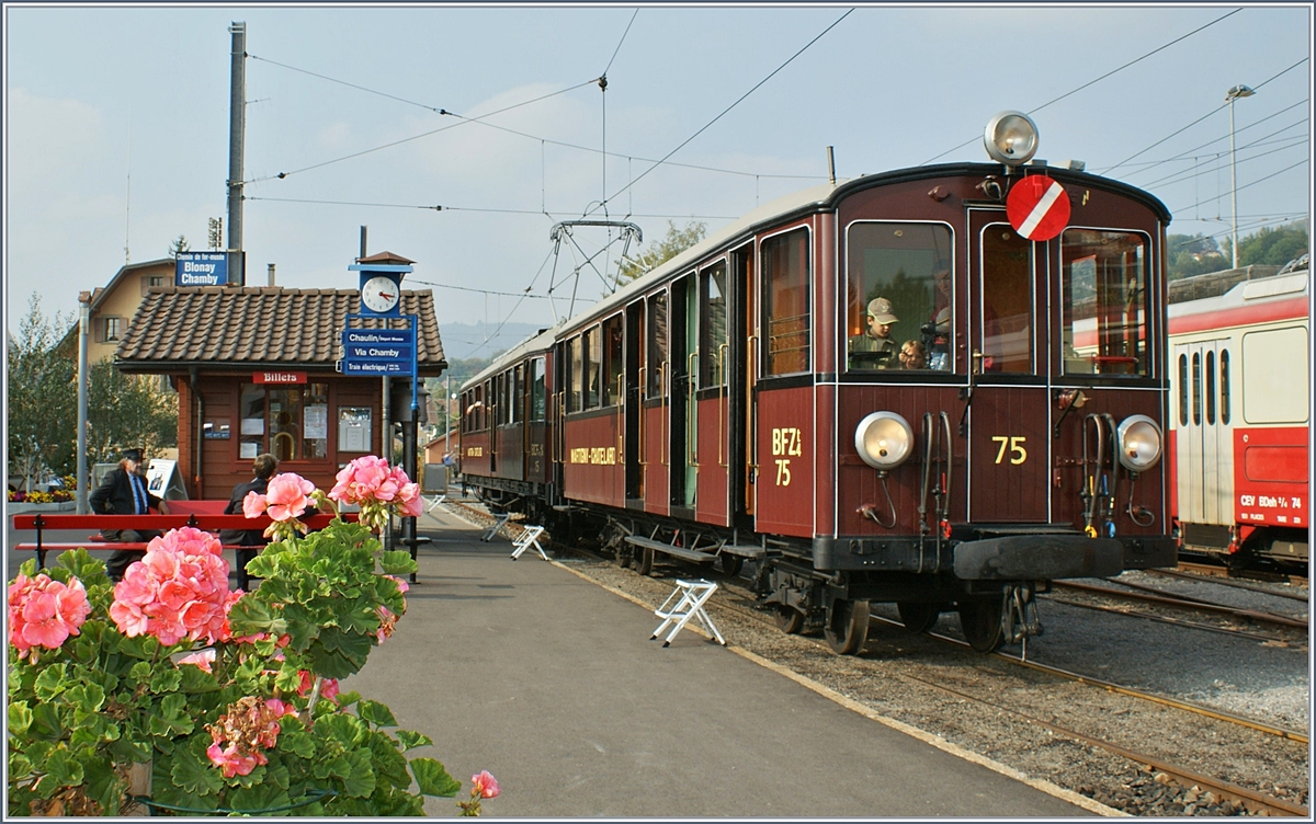 Der M-C BCFeh 4/4 N° 15 kurz nach Chaulin auf der Fahrt nach Blonay.