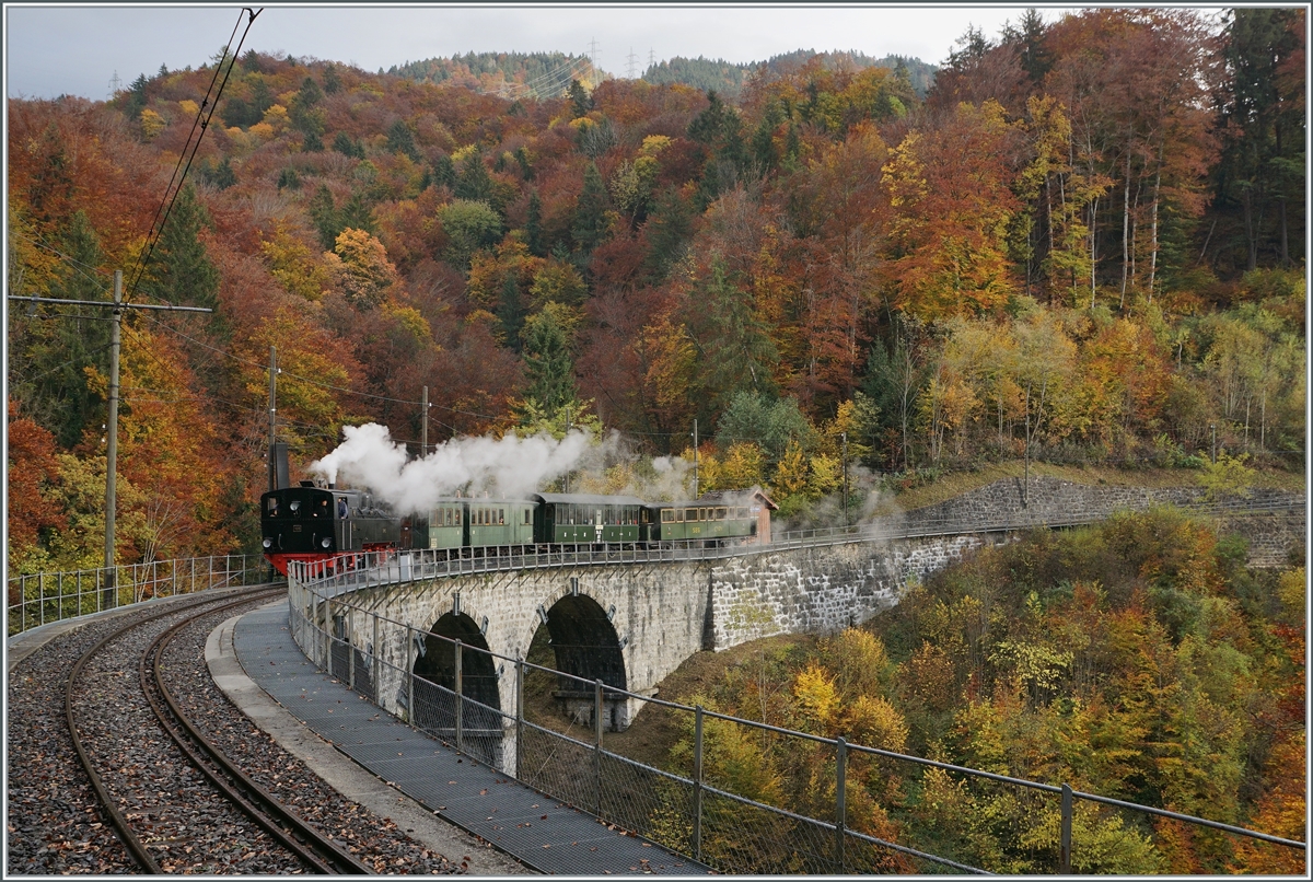La DER 2021 du Blonay-Chamby - Auf der Fahrt von Blonay nach Chamby bei Durchfahrt in Chaulin konnte die G 2x 2/2 105 fotografiert werden.