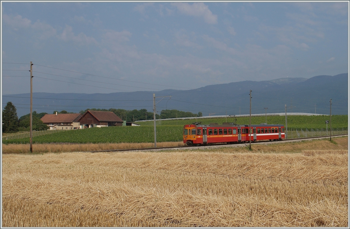 An diese Form muss man sich, zumindest in der Westschweiz, bald vermehrt gewöhnen: Ein neuer Stadler NStCM ABe 4/8 wartet im Bahnhof von Nyon auf seinen Einsatz.