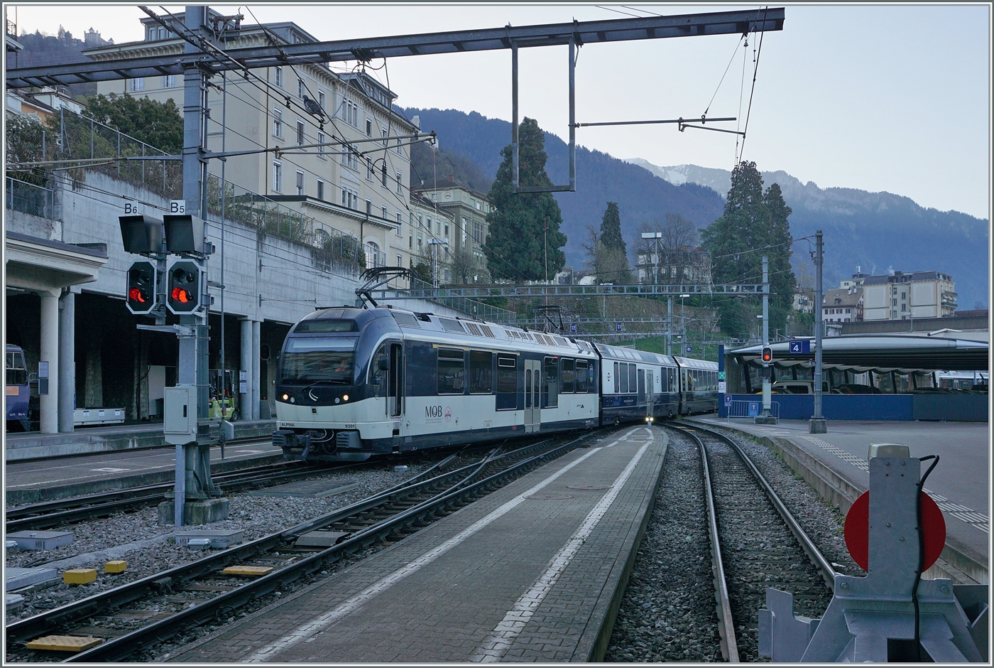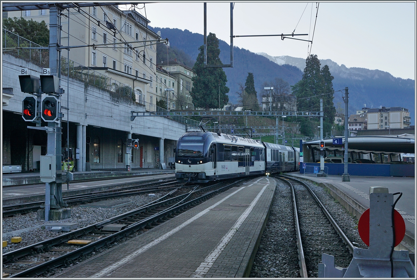 Zur Feier "120 BAM MBC" wurde der Neuen Be 4/4 31 + Be 4/4 32 vorgestellt, hier beim Manöver in Apples. 24. Okt. 2015