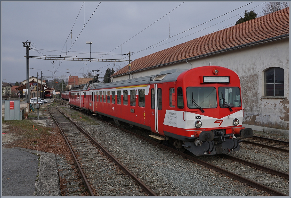 Im Bahnhof waretet der CJ Pendelzug mit dem noch als Bt 50 85 80-35 922-4 bezeichneten ABt und dem RBDe 4/4 I mit der Bezeichnung RBDe 94 85 7 566 222-6 auf die Rückfahrt nach Porrentruy.