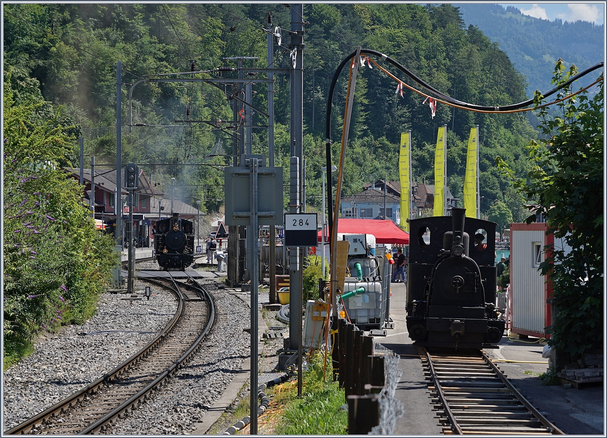 Schweizer Dampftage Brienz 2018: die BRB H 2/3 N° 5 wartet ma östlichsten Ende des BRB Bahnhofs von Brienz auf Fahrgäste nach Gäldried (und zurück). 30. Juni 2018