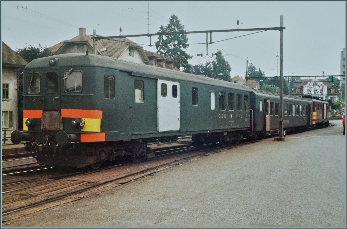Erstmal noch als S/W Version: In Beromünster wartet der "Münster-Pendel" auf die Rückfahrt nach Beinwil am See. An der Spite des Zuges ein Bti Steuerwagen. Der Mittelwagen ist ein EW II und die Traktion übernimmt der De 4/4 1668.