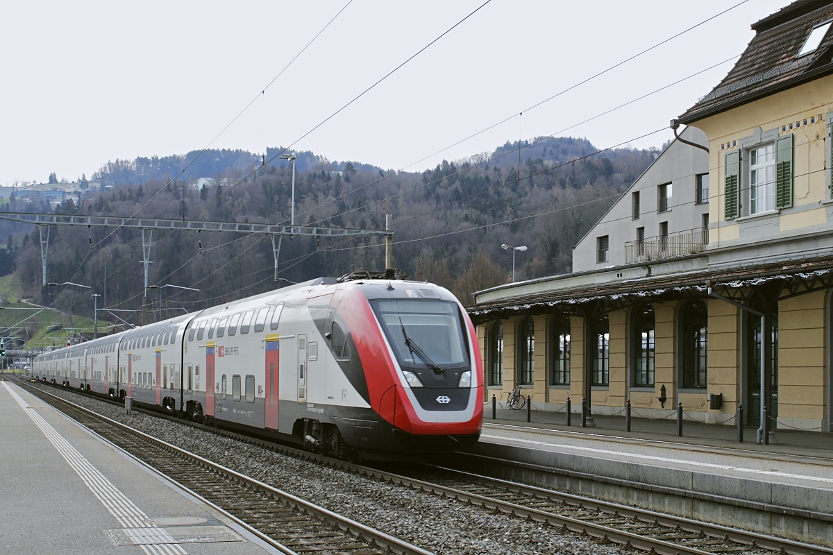 S26-BB-und-IGS-Minitreffen am 27.02.2023: Der Südostbahn-Flirt 526.003 fährt in Rheineck ein