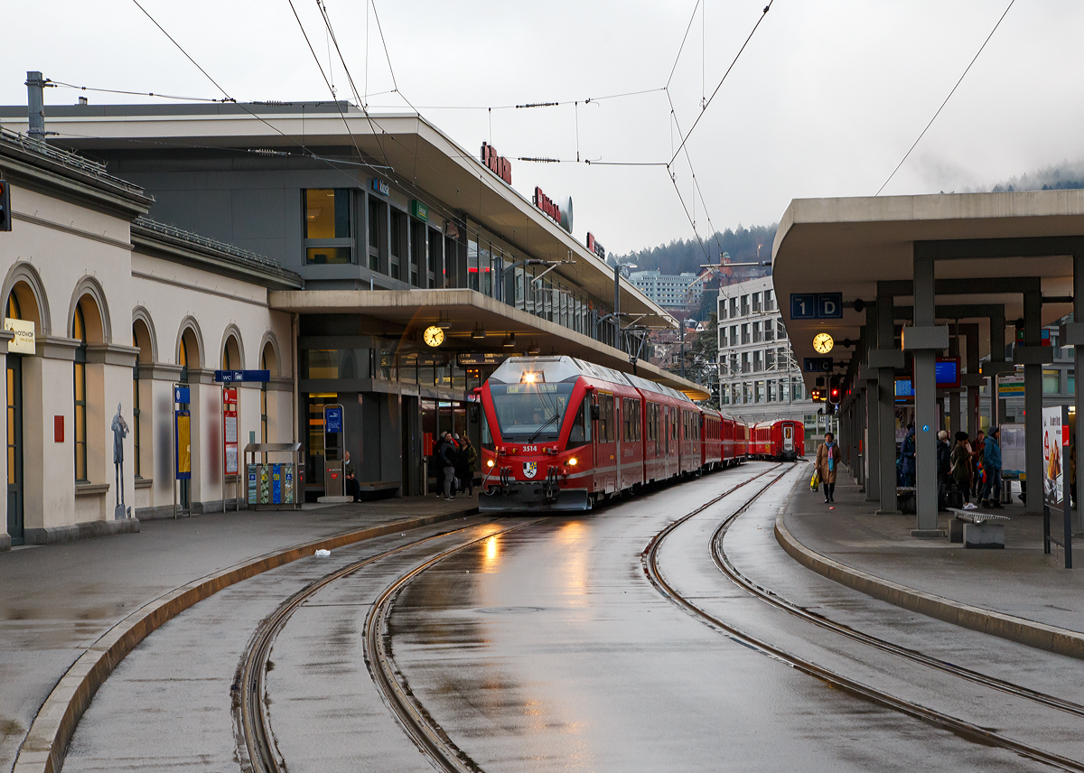 Am etwas garstigen Vormittag des 3. März 2009 hält die RhB Ge 4/4 II 621 mit ihrem Regionalzug nach Arosa in Peist.