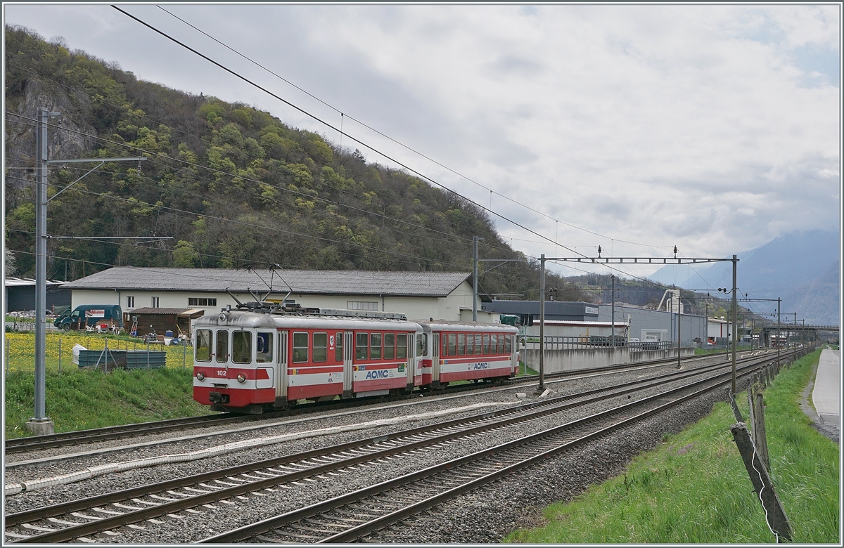 Ab dem 25. April 2016 wird die AOMC für einen freizügigeren Fahrzeugaustauch den übrigen TPC Strecken (AL/ASD) angeglichen, und somit sind die Einsätze des ex Birsigtal BDe 4/4 wohl schon Vergangheit. Hier verlässt der BDe 4/4 N° 102 mit seinem Steuerwagen als Regionalzug 144 den Halt Aigle Hôpital.