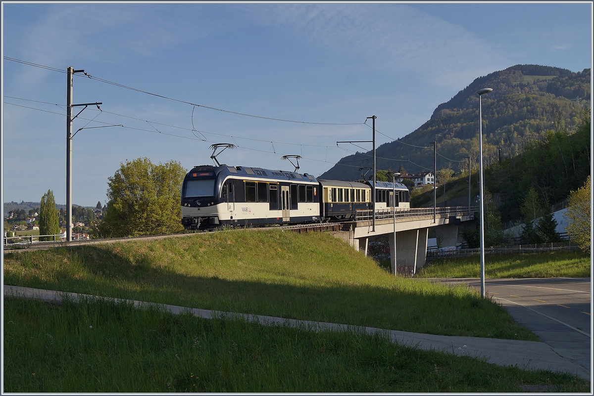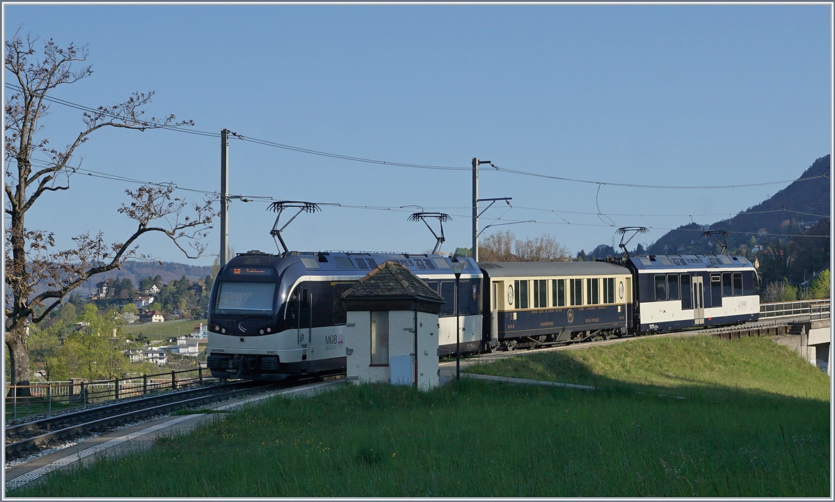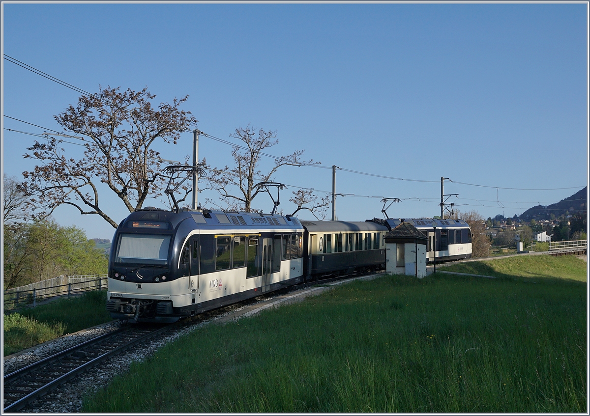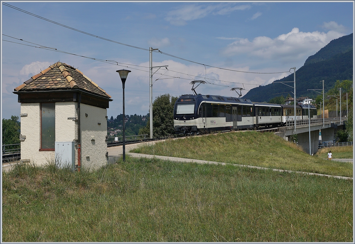 Noch sind die MOB ABDe 8/8 hin und wieder im Regionalzugverkehr Montreux-Chernex/Les Avants anzutreffen, wie hier der MOB ABDe 8/8 4004 Fribourg beim Halt in Châtelard.