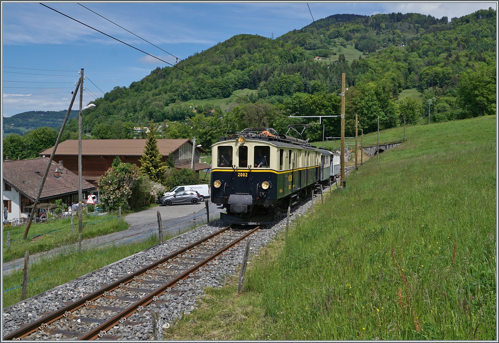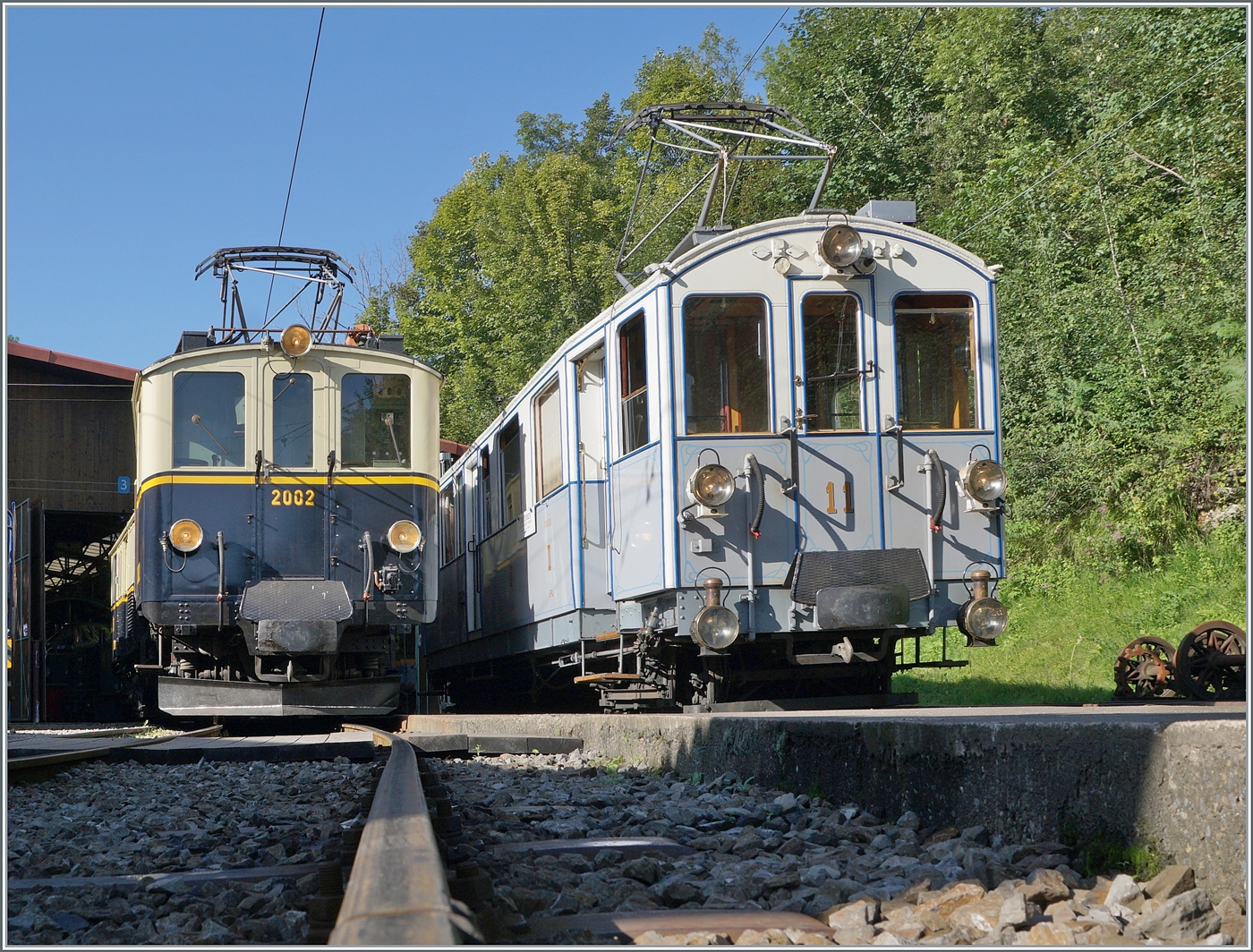 Die MOB DZe 6/6 2002 der Blonay-Chamby Bahn schiebt bei Chaulin ihren Zug in den Museumsbahnhof.