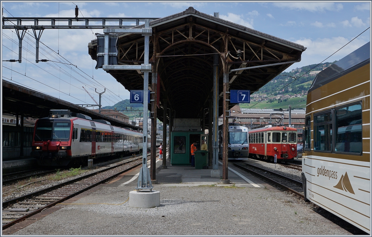 Der Gepäcktriebwagen CEV BDeh 2/4 Nr. 75 der MVR (Transports Montreux–Vevey–Riviera), ex CEV (Chemins de fer électriques Veveysans) war am 27.05.2012 in Blonay abgestellt.