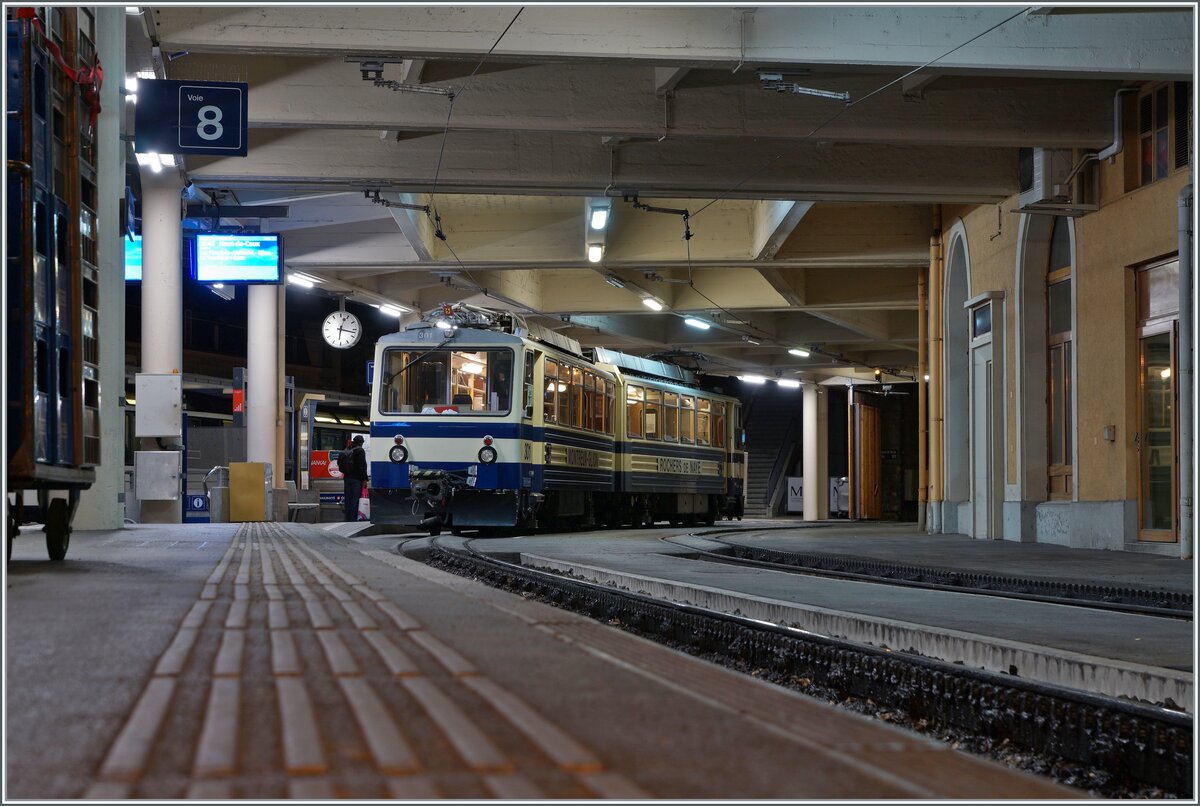 Der Rochers de Naye Bhe 4/8 302 erreicht Montreux, während der Beh 4/8 301 auf den nächsten Einsatz wartet. Dieses Jahr wurde der "Weihnachtsmarkt"-Verkehr abgespeckt: auf das Weihnachtsdorf in Caux wurde verzichtet (und somit auf den Halbstundentakt Montreux - Caux) und der Samichlaus kommt dieses Jahr nach 11 Monaten Ferien in den Genuss einer Fünf-Tage Woche (Mi-SO) und so hat er ausgerechnet am 6. Dez. frei...