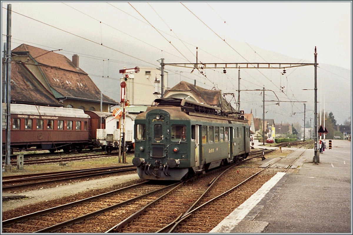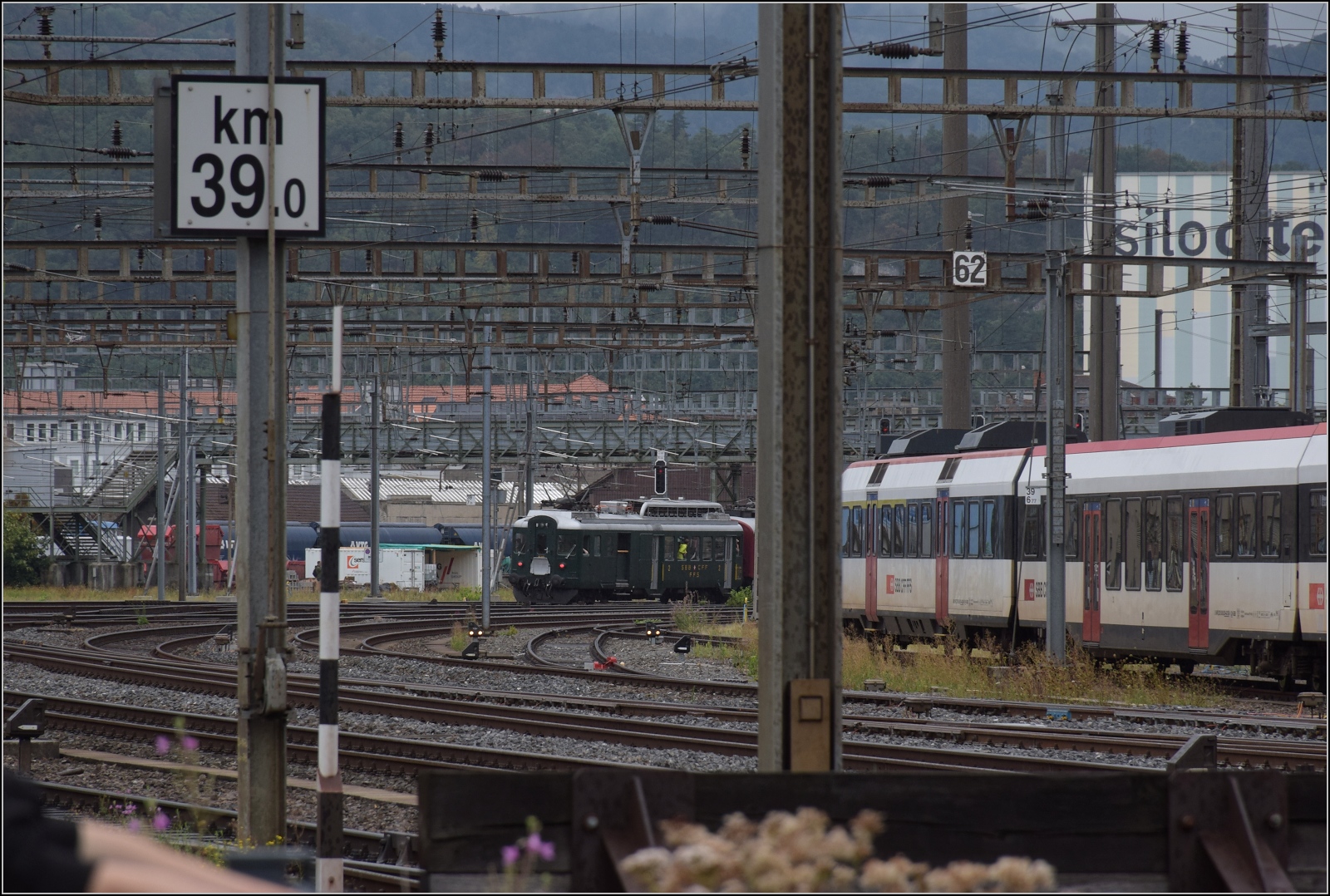 In Oensingen ist der OeBB BDe 4/4 641 im Güterverkehr mit dem Manöver beschäftig. Von den SBB für den Bummelzug* Verkehr auf Nebenlinien beschafft, wurden die BDe 4/4 in den 90ern von NPZ RBDe 560 verdrängt. Die OeBB ergriff die Gelegenheit und nutzte dann einige Jahre die BDe 4/4 im Personen- und Güterverkehr.