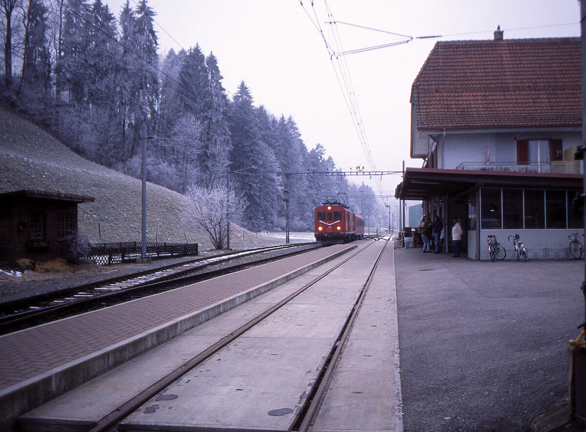 Regionalzug auf der Fahrt nach Wasen i.E. mit dem De 4/4 236 + Bt 311 "Wasen-Marie", anlässlich der Ausfahrt Ei im Mai 1994, kurze Zeit vor der Umstellung auf Busbetrieb.