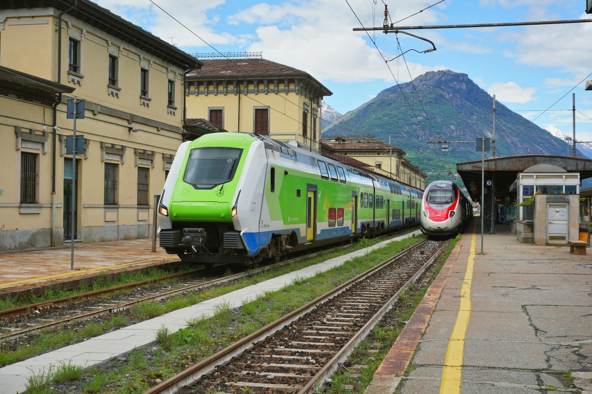 Nachschuss auf einen RABe 503, der mit einem EC auf dem Weg nach München am 24.02.2023 den Bahnhof Hergatz durchfährt. Hier ist zu erkennen, dass lediglich die Gleise 2 und 3 elektrifiziert worden sind. Am Tag der Aufnahme des elektrischen Betriebes wurde ausgerechnet der Premierenzug von Zürich nach München Murphys Gesetz folgend auf Gleis 1 geleitet...