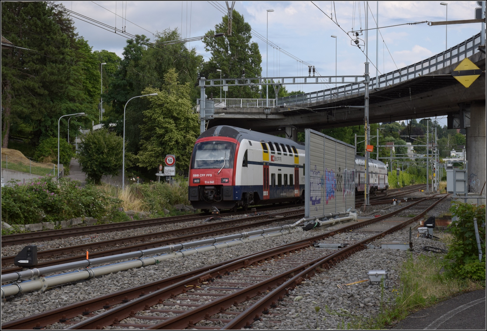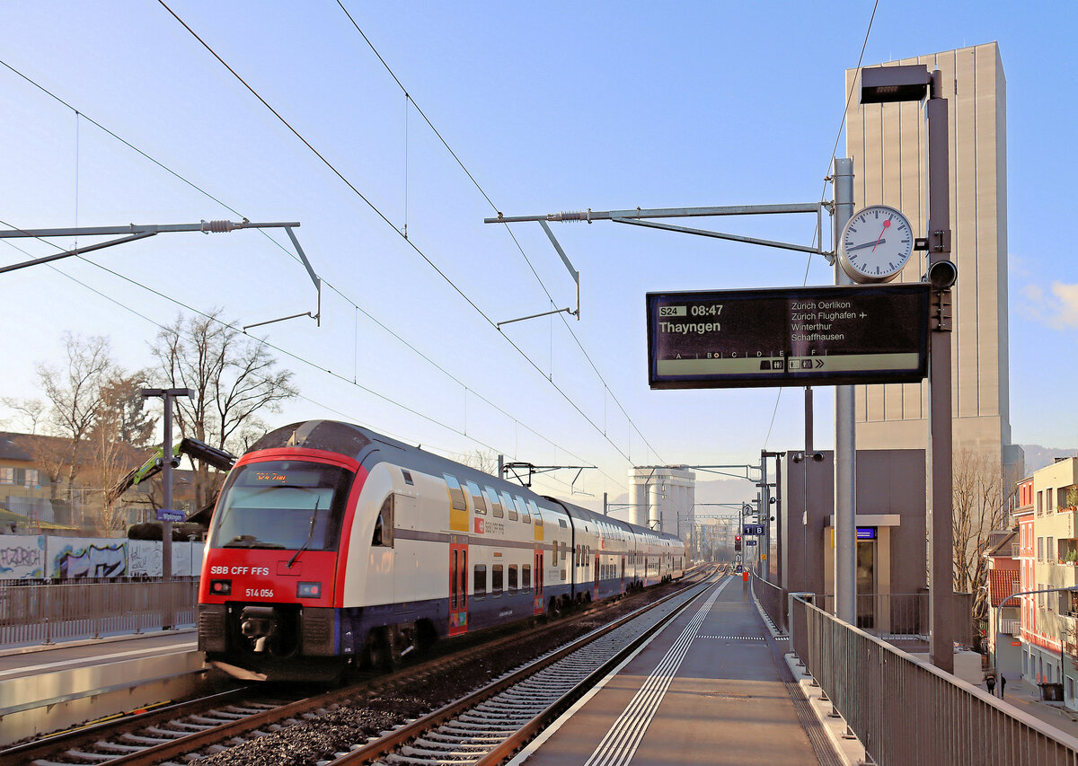 Der SBB RABe 514 047-0 (ein DTZ bzw. Siemens Desiro Double Deck) fährt am 07.06.2015, als S 16 nach Effretikon, in den Bahnhof Zürich-Tiefenbrunnen ein.